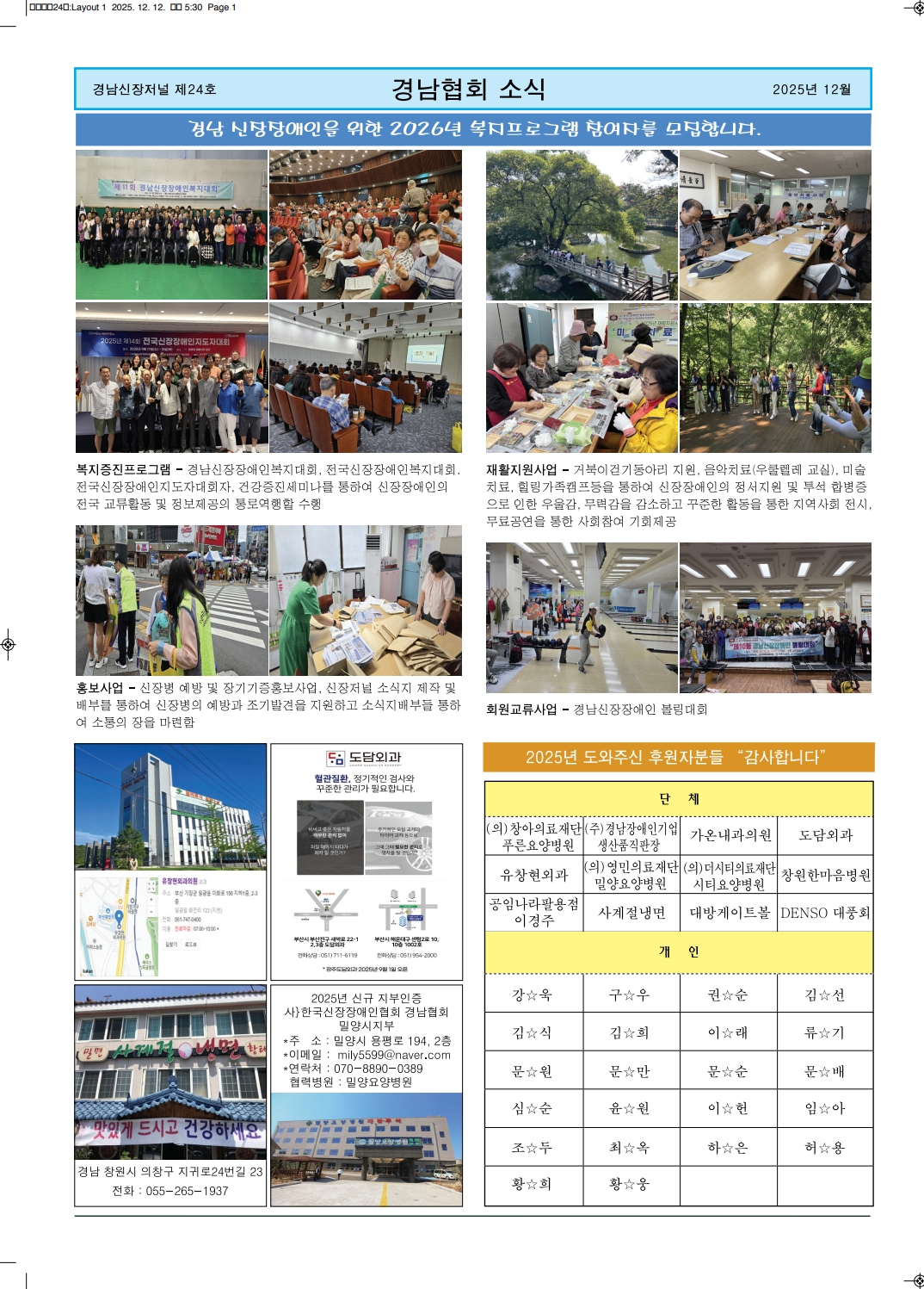 경남 신장저널- 울타리 제24호 페이지 정보 작성자 관리자 댓글 0건 조회 136회 작성일 26-01-06 13:25 목록 본문 경남 신장저널- 울타리 제24호 다음글경남 신장저널- 울타리 제23호 25.10.22 댓글 0 댓글목록 등록된 댓글이 없습니다.